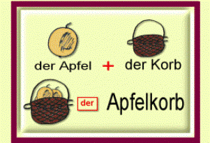 Немецкий язык богат составными (сложными) словами, т.е. словами, состоящими из двух или более простых слов. Часто в основу сложных (составных) слов входит существительное и глагол, что очень помогает понять смысл всего сложного слова, исходя из его составных частей. Например: das Schweißgerät = schweißen (сваривать) + das Gerät (орудие, прибор, аппарат) = сварочный аппарат Der Scheinwerfer = der Schein (свет) + werfen (бросать) = автомобильная фара Многие составные слова состоят из двух или нескольких существительных. Вторая составная часть в сложных существительных является основным словом (das Grundwort), а первая – определяющим словом (das Bestimmungswort), при этом род составного существительного определяет последнее стоящее существительное: Die Küchenwaage = die Küche (кухня) + die Waage (весы) = кухонные весы Der Schweinestall = das Schwein (свинья) + der Stall (стойло) = свинарник Die Wanduhr = die Wand (стена) + die Uhr (часы) = стенные часы Иногда смысл всего сложного (состав