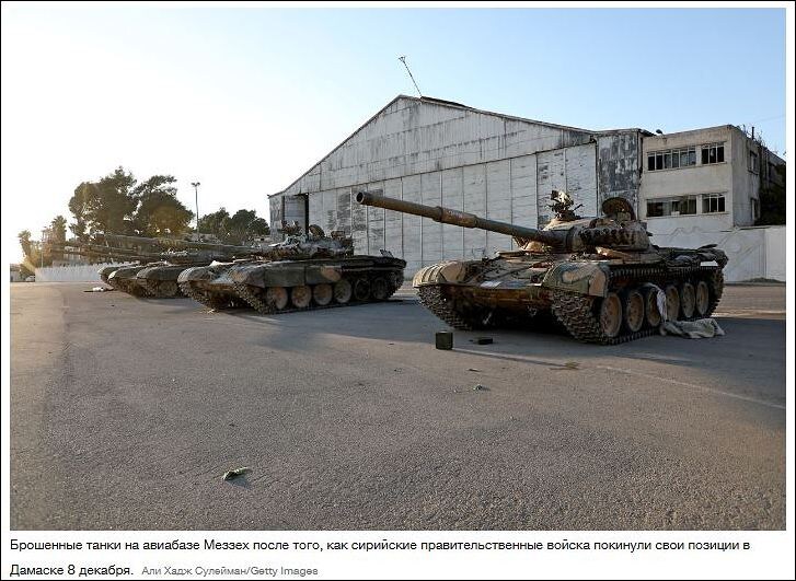 Но вот что интересно, я внимательно отслеживаю события в Сирии, ведь и самому пришлось там бывать во время военной службы - и заметил, что в наших новостях уже не упоминаются террористы, а только "оппозиционные формирования". Хотя ХТШ вторая, если не первая сила в этих формированиях. Ещё интересный момент, хотя в начале их победного марша на Дамаск наши ВКС наносили по ним авиаудары, то потом вдруг перестали. Если оценить феерический драп сирийских правительственных войск, то это вполне оправдано, как сказал наш президент, мы не будем большими сирийцами, чем сами сирийцы