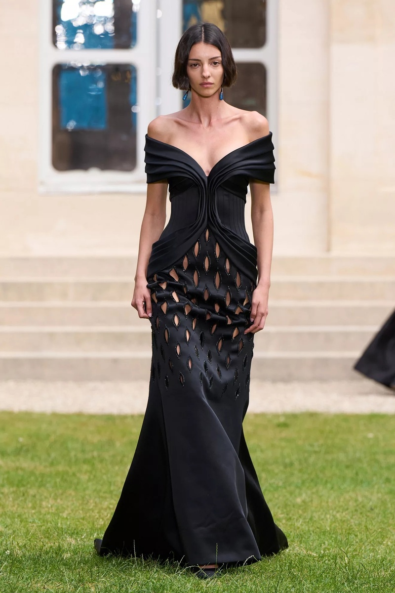 Тема ботанического сада на кутюрной Неделе моды в Париже нашла свое отражение и в коллекции George Hobeika (Джордж Хобейка). Ливанский бренд всегда отличался своей страстью к роскоши, поэтому его коллекция, который невозможно упустить из виду, — блеск, цветы и безупречный силуэт, что превращает женскую фигуру в изящный стебель, плавно перетекающий в пышный бутон. Посмотрите, какой у платьев структурный верх. Низ может быть любым: летящим, тонким, вислым, но верх всегда очень чётко оформлен. Такой дизайн в этом году применил не только модный дом George Hobeika, это общая тенденция силуэта. И немного об истории самого бренда: Georges Hobeika — это известный ливанский бренд, созданный дизайнером одежды Джорджем Хобейкой. В 1995 году Хобейка открыл свой модный дом в Бейруте, Ливан, и с тех пор представляет свои коллекции в Париже. В 2022 году Джад Хобейка, сын Джорджа Хобейки, был представлен как со-креативный директор модного дома, сотрудничающий со своим отцом. В настоящее время Жорж Хоб