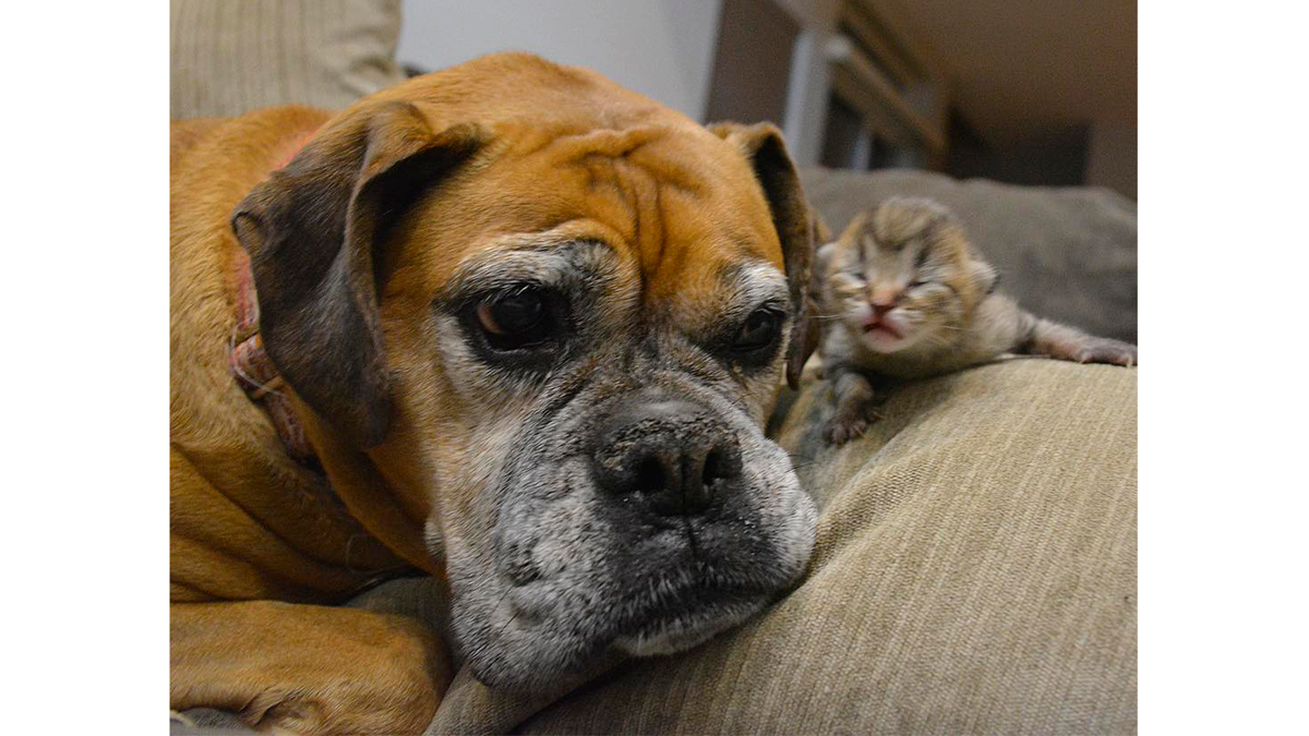Американка Келли четыре года назад решила, что хочет помогать животным, рассказывает Daily Mirror. Тогда она впервые взяла на передержку пятерых котят, которым было всего четыре недели. В доме у Келли живет боксер по имени Сьюзи, которого первое время хозяйка не подпускала к котятам. «Я решила, что буду держать собаку в другой комнате. В конце концов, кошки и собаки обычно не ладят», — говорит Келли. Каждый раз выходя на прогулку, Сьюзи пыталась узнать, что было в комнате с кошками. Через какое-то время Келли познакомила собаку с гостями: «Я не без волнения наблюдала, как Сьюзи осторожно подошла, а потом села рядом с котятами. Они же взобрались на нее и уснули, а она даже не шелохнулась». Летом 2015 года в дом американки попал котенок по имени Куши. У него было увеличенное глазное яблоко, которое ему пришлось удалить. Котенок очень сдружился с боксером. И три месяца спустя Куши все-таки остался у Келли в качестве нового соседа. С тех пор Куши и Сьюзи вместе начали выхаживать котят.