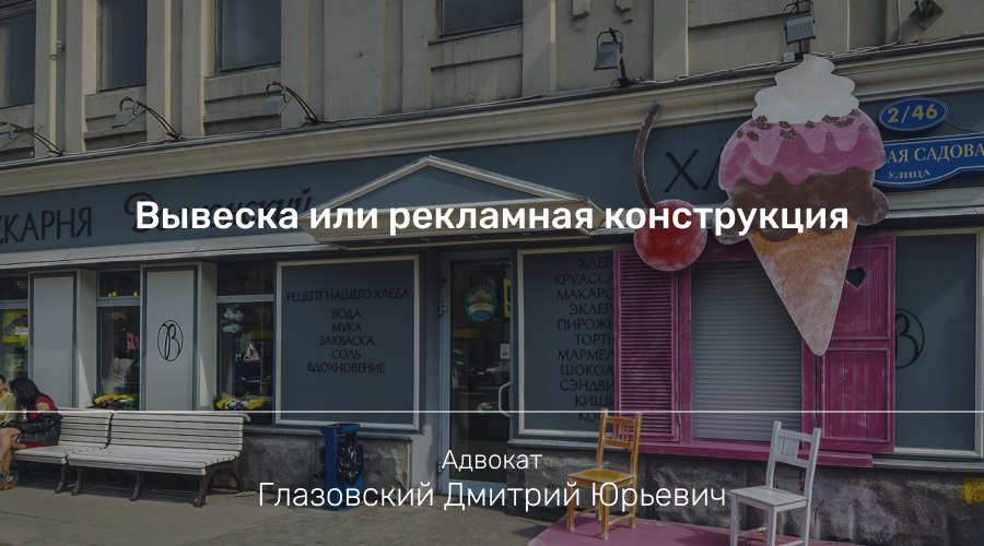 В рамках правового консультирования деятельности компании возник вопрос по спору организации, арендующей помещение в многоквартирном жилом доме для размещения кондитерской, с собственником помещений, который настаивал, что вывеска у входа в виде надписи "Кондитерская" является рекламной конструкцией, плата за установку и эксплуатацию которой подлежит взиманию отдельно. Кроме того, требуется согласование на размещение такой конструкции.
