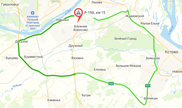 На время работ водителям предлагают объезжать перекрытый участок через поселки Новинки, Окский, по южному обходу либо через деревню Бешенцево, поселок Ждановский, по обходу Кстово.
