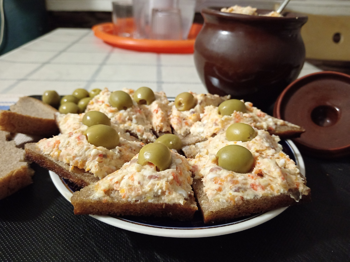 Я люблю паштеты. И это блюдо тоже, по сути паштет. Покупаем свежемороженную, выбираем тушки покрупнее. Готовим две тушки. Разморозим, помоем, чистить и потрошить не надо. Приготовим маринад: Всё вскипятить, охладить и залить селёдку. Поставить не тяжёлый гнёт и в прохладное место, можно в холодильник на сутки. Всё, селедка домашнего посола готова! Чистим, удаляем кости. Ну здесь уже просто: Всё собираем, крутим в мясорубке. Масло сливочное лучше заморозить. Как следует, тщательно перемешаем, пробуем по соли - при необходимости подсаливаем. Всё готово! Советую подавать на гренках из черного хлеба. Гренки можно слегка натереть чесноком. Украсить оливками и маслинами. Очень вкусно! Можно приготовить для фуршета на праздничный стол. Пишите комментарии, ставьте лайки! Спасибо что дочитали до конца!