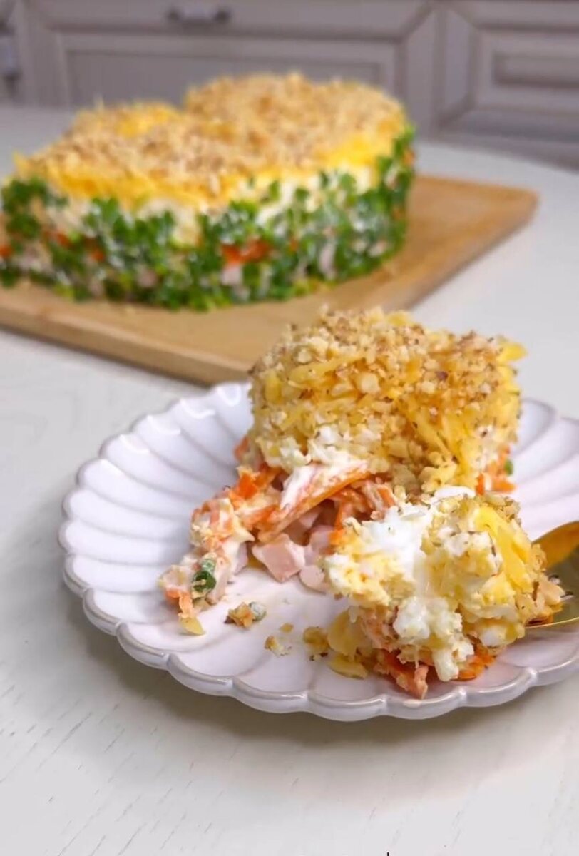 Бока салата можно немного смазать майонезом, чтобы лук хорошо «держался».