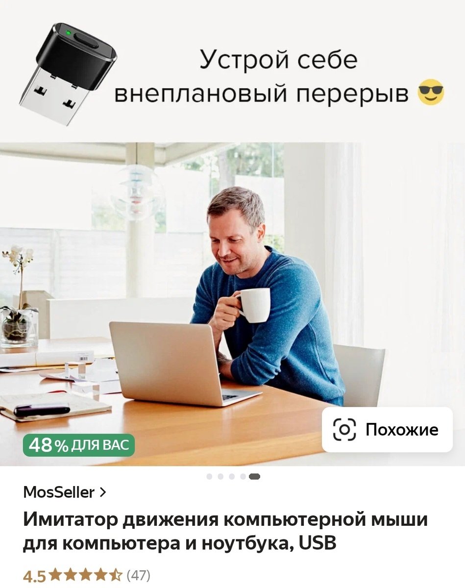 Новый дивайс, который отведет взгляд руководителя или кого еще от вашей лени. Конечно, если минусы. Быстрей разряжается ноутбук. Ну и что? Вас - лентяев - это разве волнует? Действуйте, пока не разобрали. Что главное - это результат, а не сколько раз в минуту сотрудник водит мышкой по экрану. Вот сейчас я все это пишу, а мышка то лежит и что? Я бездействую что ли?