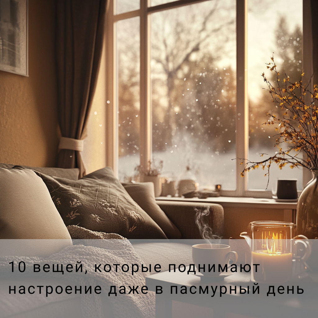 Пасмурные дни могут легко сбить нас с настроя. Солнца нет, всё кажется серым, и кажется, что даже кофе не такой вкусный, как обычно. Но это отличный повод вспомнить, что радость можно найти в самых простых и доступных вещах. Вот 10 способов поднять настроение, когда за окном всё серо и уныло: 1. Уютное время с любимым напитком Когда за окном дождь, согрейте себя тёплым напитком. Заварите любимый чай, какао или кофе. Добавьте в него что-то особенное: корицу, маршмеллоу или даже ложечку мёда. Устройтесь на диване с пледом, включите приятную музыку и наслаждайтесь моментом. Это простое действие помогает переключиться и ощутить тепло даже в самый холодный день. 2. Прогулка под дождём (да-да!) Дождь может быть романтичным и даже вдохновляющим. Наденьте непромокаемую обувь, захватите зонт и отправляйтесь на прогулку. Шум капель, свежий воздух и особый аромат природы подарят ощущение обновления. Иногда смена привычной обстановки — лучший способ встряхнуться. 3. Лист ожиданий и благодарностей