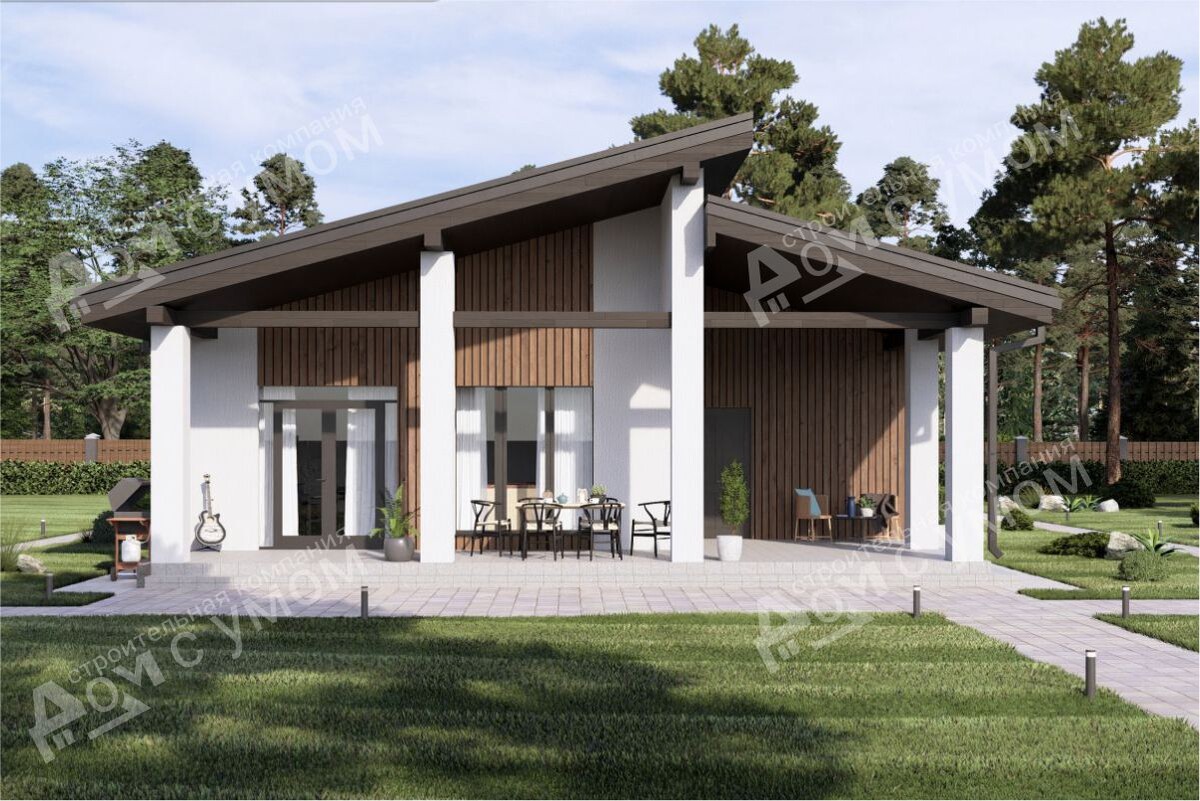 Проект был разработан для узкого участка. Дом вытянут по главному фасаду, его габариты — 20 х 11 м, а площадь 176 кв.м. Общая площадь: 176,8 кв.м