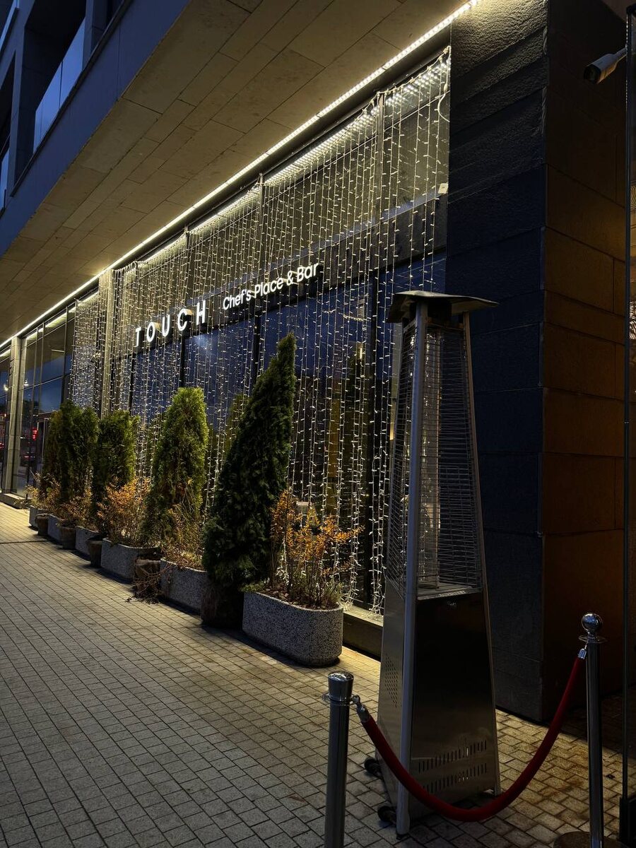 На Садовнической набережной живописно расположится двухуровневый проект русской кухни Touch во главе с бренд-шефом Никитой Кузьменко. Интерьер Ресторан облачился в темные тона с яркими акцентами на детали и примечательными концептуальными фигурами в виде рук (отсылка к названию «Прикосновение»). Вдоль ресторана панорамные окна, большое количество зелени. Само заведение просторное разделено на несколько зон. Малый или винный зал - на 20-25 персон. Камерное пространство, которое подойдет для небольших мероприятий: семейных банкетов или бизнес-завтраков. Основной зал - более просторный с прицепом на второй этаж, открытой кухней и баром. А если вы интровернт, как и я - вашему вниманию предложат отдельную vip-комнату с одним столом на 8 персон. Вдали от посторонних глаз на втором этаже. Кухня Меню авторское с упором на русскую кухню. Цены, наверное, уже принято считать приемлемыми, учитывая, что творится в других ресторанах. Если провести зрительно диагональ - можно закрепить формулу «блюдо