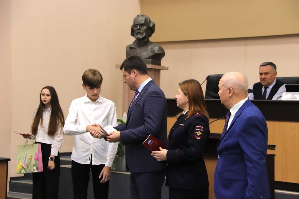 10 декабря пятеро школьников из Калуги получили свои паспорта граждан Российской Федерации. В торжественном мероприятии участвовали глава городского самоуправления Калуги Юрий Моисеев, первый заместитель председателя городской думы Александр Иванов и заместитель начальника отдела по вопросам миграции УМВД России по городу Калуге Галина Головёнкова. «Сегодня вы делаете важный шаг на пути во взрослую жизнь, получая главный документ гражданина России, который будет сопровождать вас на протяжении всей жизни. С каждым годом ваши права будут расширяться, но вместе с тем появятся и новые обязанности. Сейчас ваша основная задача – учиться, получать образование и выбирать свой путь», – обратился к молодежи Юрий Моисеев. Депутаты также рассказали учащимся школы №3 о Конституции РФ, о работе местного самоуправления и городской думы Калуги. Обсуждались вопросы развития, благоустройства и озеленения города, а также выбор будущей профессии и трудоустройство. Юрий Моисеев предложил юным калужанам в с