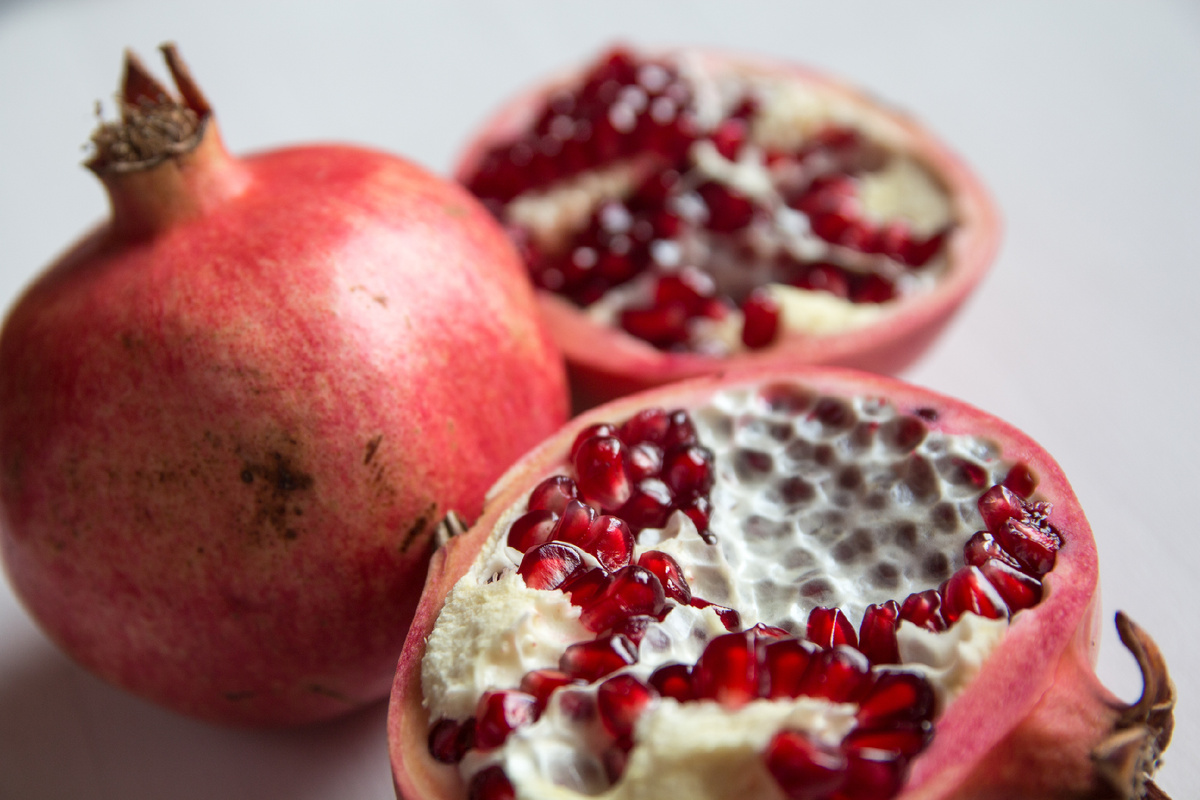Гранат часто называют зернистым яблоком. Кожура, мякоть и косточки этого удивительного фрукта обладают способностью повышать гемоглобин. Но у граната немало и других ценных свойств, делающих его особенно полезным для людей с сахарным диабетом. Плоды граната богаты пуникалагинами и пуниковой кислотой. Эффективность этих мощнейших природных антиоксидантов в 3 раза превосходит аналогичные свойства зеленого чая и красного вина. Вещества снижают окислительный стресс и перекисное окисление липидов, характерные для развития сахарного диабета. Благодаря высокому содержанию пуниновой, эллаговой, галловой и других аминокислот фрукты способствуют нормализации уровня глюкозы в крови, а также подавляют выработку ферментов, играющую большую роль в развитии диабетических осложнений. Гранатовый сок содержит до 6% лимонной и яблочной кислот, много клетчатки (до 12% от суточной нормы), дубильные и азотистые вещества, флавоноиды, кахетины. Семена граната богаты жирными маслами (олеиновой, ленолевой, паль