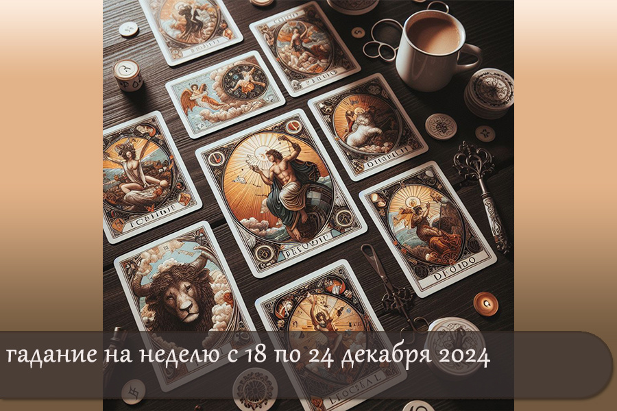 Вот общее гадание на неделю с 17 по 24 декабря 2024 года для всех знаков зодиака. Каждому знаку будет предложена основная карта и краткое предсказание на неделю. Овен Карта: Повешенный На этой неделе вам предстоит посмотреть на некоторые ситуации под новым углом. Возможны задержки или необходимость отказаться от привычных подходов. Используйте это время для саморазмышления. Телец Карта: Четверка Жезлов Период стабильности и празднования. Эта неделя принесет радость и гармонию в семейные отношения. Отличное время для планирования совместных праздников и мероприятий. Близнецы Карта: Рыцарь Кубков На неделе ожидайте романтические подарки или предложения. Ваши чувства будут на первом месте. Будьте открыты новым эмоциям и романтическим приключениям. Рак Карта: Десятка Пентаклей Время семейной сплоченности и финансового благополучия. Подумайте о своих целях и планах на будущее. Это удачный момент для работы над семейными проектами. Лев Карта: Пятерка Жезлов На неделе возможно столкновение с