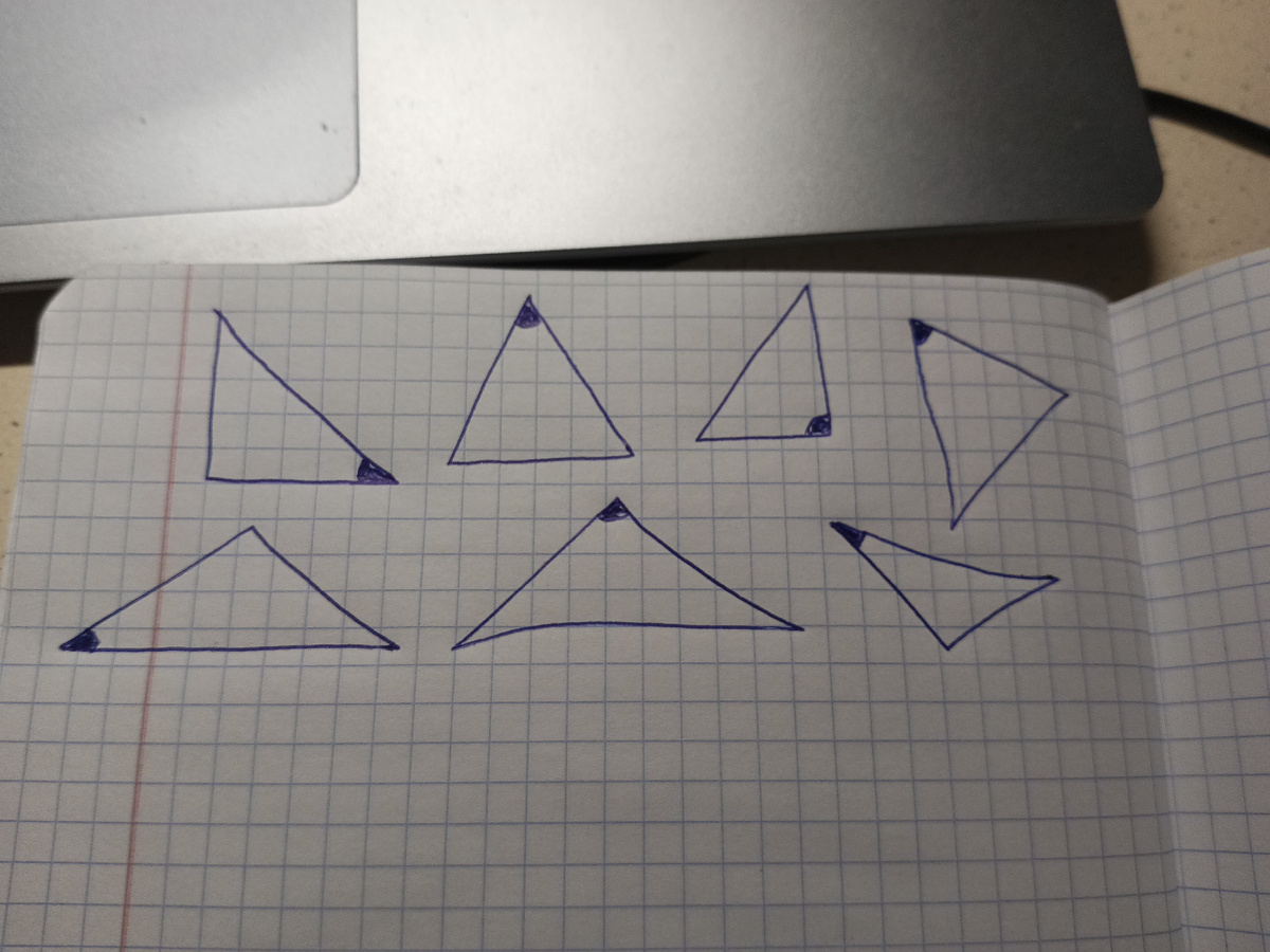 Вот мы и доползли, поколение гаджетов, до 7 класса, где нас встречает геометрия и алгебра! Вот они, деточки, здравствуйте, мои бедные! Кого слопали гаджеты? Да почти всех. Почти все поколение, которое взяло их в руки. И стало тыкать туда пальчиками. Листать ленту и скакать в тик- токе. Тик- токеры. Привет!!! Посудите сами... Дети не могут найти сторону, лежащую напротив угла. Вот мои типичные задания, от руки рисую! Прошу раскрасить сторону, лежащую напротив угла. Не видят! Повезло мальчику, который ходит на дом. Мы на полу карандашами угол построили, он выходил из угла и шел искать противоположную сторону! Предлагаю представить себе, что встал в угол и смотрит оттуда на противоположную сторону -не понимает! Только пешком. А если в четырёхугольнике, то вообще мрак! Очень все это нужно. Или нет. Обойдемся? Катет, лежащий напротив угла в 30 градусов, равен половине гипотенузы. Гипотенузу найти- тот еще квест. Она же тоже лежит напротив угла в 90. Да что говорить, в четырехугольниках не