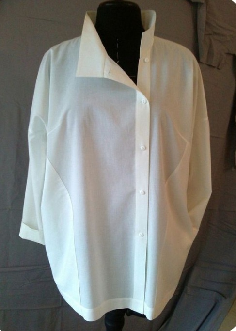 Всем привет! Среди разнообразия моделей рубашек хочу предложить несколько идей заслуживаших внимания. У каждого в гардеробе имеется такая блузка рубашечного типа. Она универсальна, проста и комфортна. Оживим эту модель рубашки, пришив еще одну ложную планку и сделаем низ разной длины или разной формы. Выкроим одну полочку длиннее другой и соберем ее с помощью складок. Продернем через часть планки шнурок , соберем ее в сборку и зафиксируем шнур через деталь из бокового шва. Обычно застёжка на блузке это прямая планка или отворот с подбортом. Ниже на фото несколько моделей с фигурными планками, дополненные декором из сборки, тесьмы и контрастных пуговиц. Следующие идеи акцентируют внимание на талии. Треугольные детали вшитые в бока завязаны спереди бантом Односторонний хлястик зафиксированный пуговицей образует мягкие складки на одной полочке. Более лаконичный тонкий шнур- рулик также приталивает силуэт рубашки с одной стороны. И еще несколько идей со складками и подхватами.
