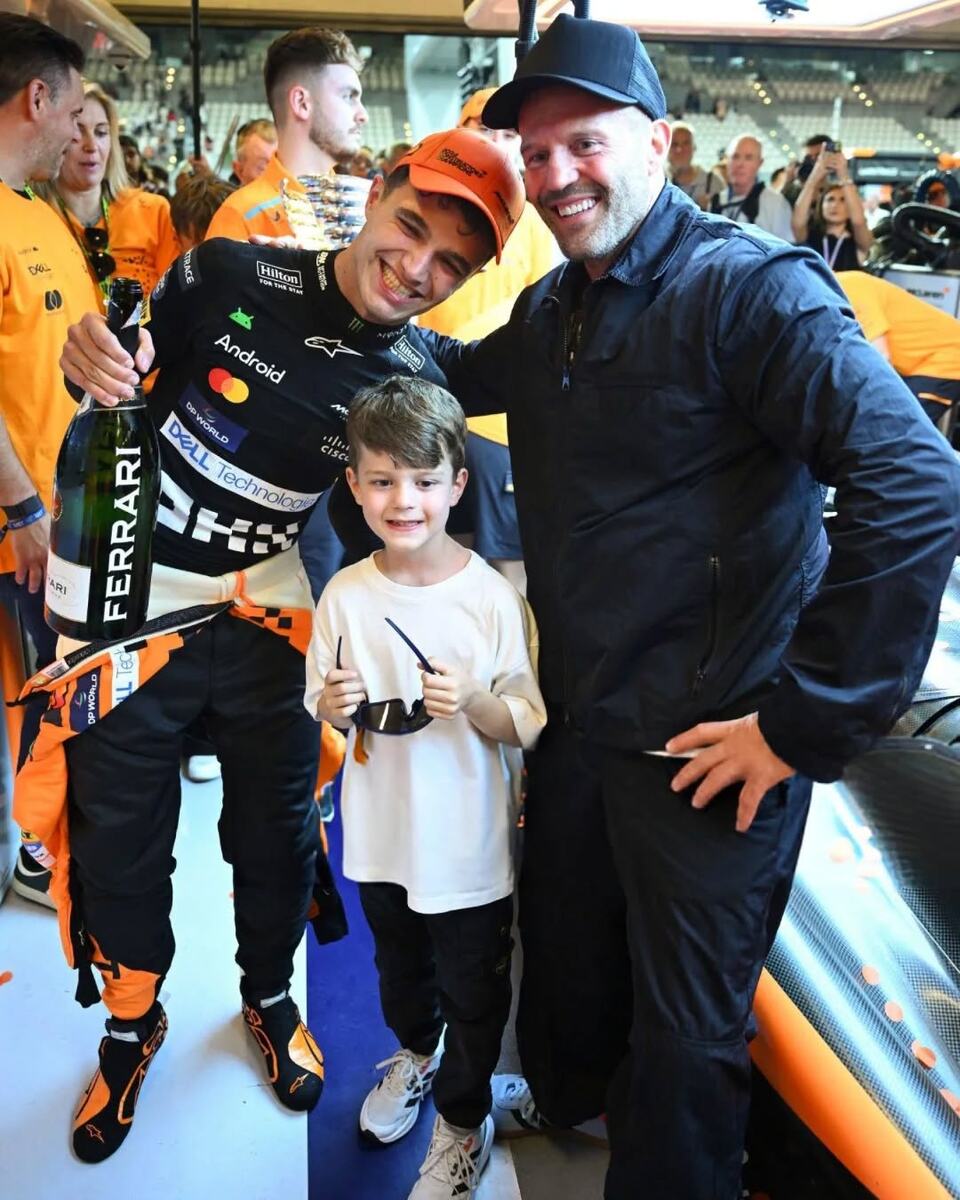 Известный английский актёр Джейсон Стэйтем одним из первых поздравил Ландо Норриса с победой на Гран-при Абу-Даби в минувшее воскресенье. Стэйтем посетил гонку вместе с сыном Джеком, а после финиша гонки посетил боксы команды McLaren, которая в тот уикенд завоевала первый за 26 лет Кубок конструкторов. Позднее Стэйтем выложил фотографии с Ландо Норрисом, ещё раз поздравив соотечественника с важной победой.