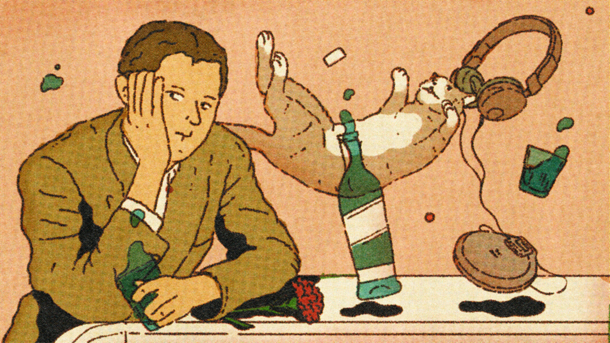 Герой часто ест и пьет один, и упоминание какого-нибудь японского треш-джанк-коллектива, который он тоже слушает один, — это показатель его эстетического одиночества.