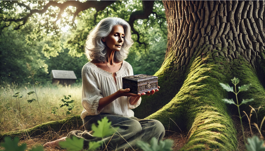 Она начала копать. Сначала земля давалась тяжело, корни цепляли совок, будто сопротивляясь. Потом, слой за слоем, стала открываться знакомая картина: гнилая тряпка, в которую они завернули шкатулку, чтобы скрыть её от дождя.