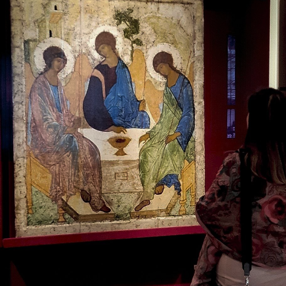 В процессе изучения мы касались иконы Андрея Рублева "Троица". Это моя любимая икона.