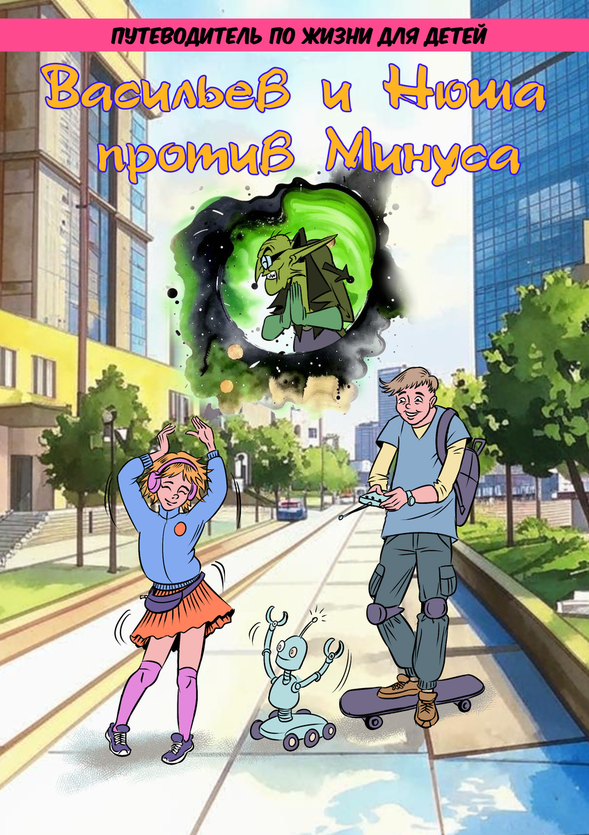 Всем привет! Предоставляю вашему вниманию комикс, который я рисовал на заказ по сценарию заказчика. Комикс рассказывает нам о двух детях: девочке Нюше и мальчике Васильеве. Вместе им предстоит предолевать ловушки и трудности на своём пути, расставленные коварным Минусом - слугой самого Зла, который питает свои колдовские силы тёмной негативной энергией получаемой от страдания людей. Минус решил заманить детей в темное царство Зла. Для этого он решил с помощью колдовства превратиться в старушку и заманить детей в портал за углом. Но как оказалось, дети не так глупы. Нюша сразу заподозрила неладное и предостерегла Васильева. Вместе они ушли в людное место, где они будут в безопасности.