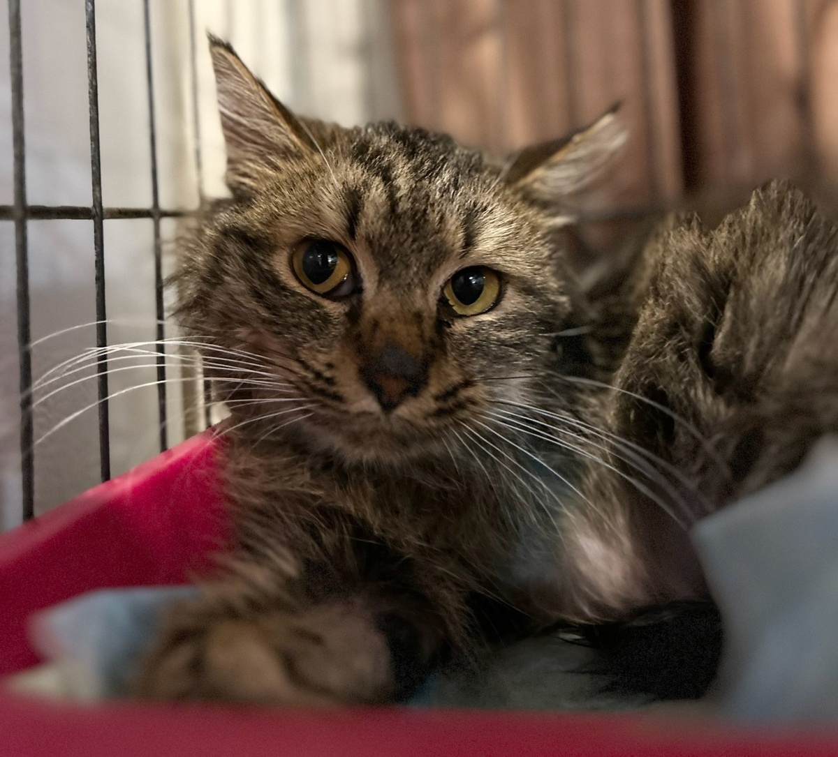 У кота была серьёзная травма — раздроблена лапка и, увы, началось заражение. Лапку пришлось ампутировать, но теперь он больше не страдает. Нет боли, но есть страх: а вдруг теперь его никто не полюбит?