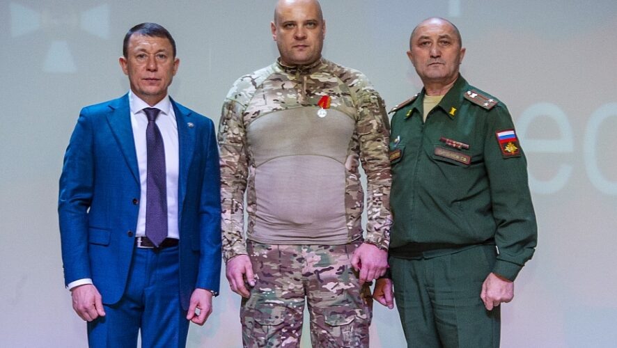 Государственные награды вручили в Нижнекамске участникам специальной военной операции. В татарстанском кадетском корпусе имени Гани Сафиуллина прошел концерт, посвященный Дню Героев Отечества. Мэр Рамиль Муллин поблагодарил участников СВО и вручил утвержденные указом Президента России награды. Орденом Мужества наградили сержанта Ивана Юсупова. Медалью Жукова удостоились рядовые Руслан Низамов, Александр Сусяев и Сергей Пахомов. Они, по сообщению пресс-службы местной администрации, проявили отвагу и самоотверженность при исполнении воинского долга. Кроме того, медали за заслуги вручили родным и близким погибших в зоне СВО бойцов. Фото: Пресс-служба НМР Ранее KazanFirst сообщал, что в День Героев Отечества депутату Госсовета Татарстана, кавалеру Ордена Мужества Эдуарду Шарафиеву вручили еще одна боевая награда – медаль «За храбрость» второй степени. Этой награды его удостоили за героизм, проявленный в боях при освобождении села Богдановка в ДНР.