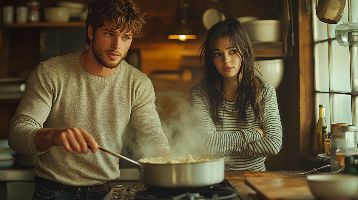 Но вечером Вику срочно вызвал клиент, для которого она выполняла заказ. Максиму пришлось стоять у плиты одному. Борщ уже вовсю кипел на плите, когда ему неожиданно пришла в голову какая-то рабочая идея.