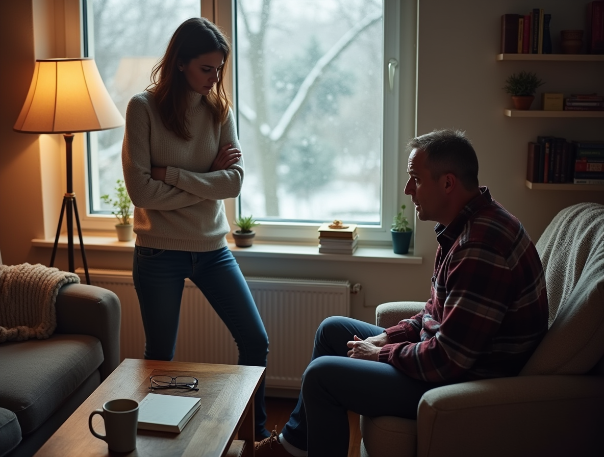 В комнате повисла тяжелая тишина. Михаил опустил голову, его пальцы нервно теребили край диванной подушки.