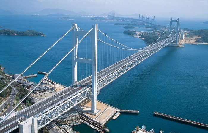Как раз пришлось слышать о том, что Япония, лежащая на островах, возводит десятки, если не сотни автомобильных и железнодорожных над морем, в то время как Россия до сих пор не может справиться со строительством одного единственного моста на Сахалин. Отчасти подобный упрек действительно справедлив, но только отчасти. Однако, прежде чем поговорить о сообщении Большой земли с Сахалином, было бы не лишним поближе взглянуть на те самые «сотни» мостов на японских островах. Самым большим островом Японии является Хонсю. На его долю приходится около 60% площади и до 75% населения Страны восходящего Солнца. Именно на Хонсю находятся такие известные города, как Осака, Хиросима и, конечно же, Токио. Вокруг Хонсю расположено еще три крупных острова: Хоккайдо на севере, а также Сикоку и Кюсю на юге. Забегая вперед, никаких сотен и даже десятков крупных мостов между этими островами нет. Существующие «твердые» переправы между островами можно пересчитать по пальцам одной руки, что, впрочем, нисколько н