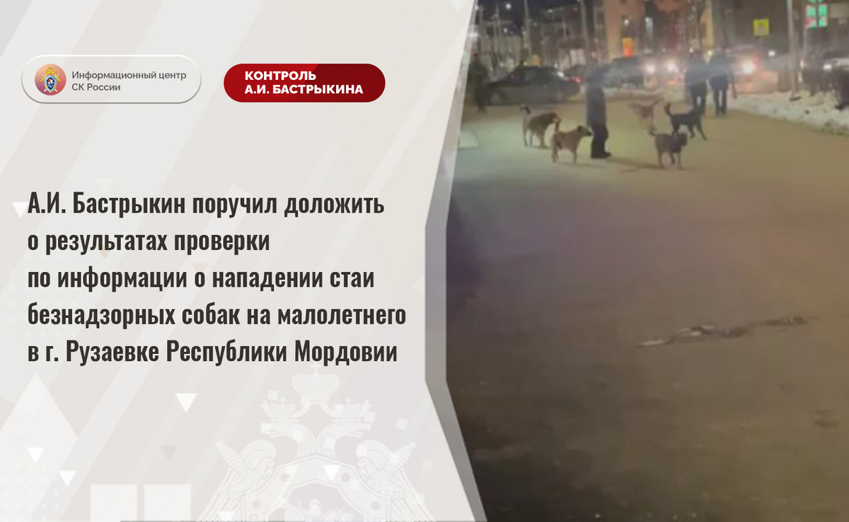 Внимание Председателя СК России А.И. Бастрыкина обращено на публикации в социальной сети о том, что в декабре текущего года в городе Рузаевке Республики Мордовии агрессивные животные набросились на мальчика. Ребенку удалось укрыться от стаи бродячих собак в помещении торгового объекта. Отмечается, что безнадзорные животные длительное время обитают вблизи образовательного учреждения, однако мер к организации их отлова не принимается.