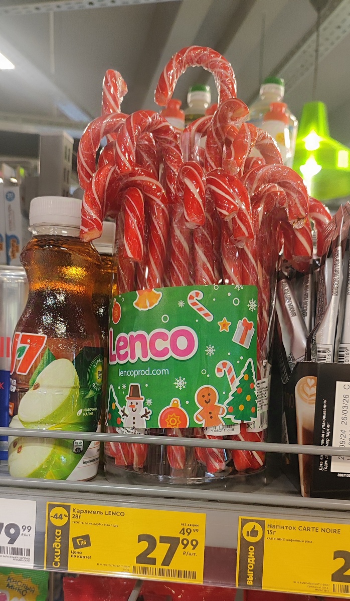 В Пятёрочке скидка на новогодние леденцы-трости. Я себе такие прикупила. Их и в качестве дополнения к подарку можно, и как украшение - хоть на ёлку, хоть на дверцу шкафа повесить.