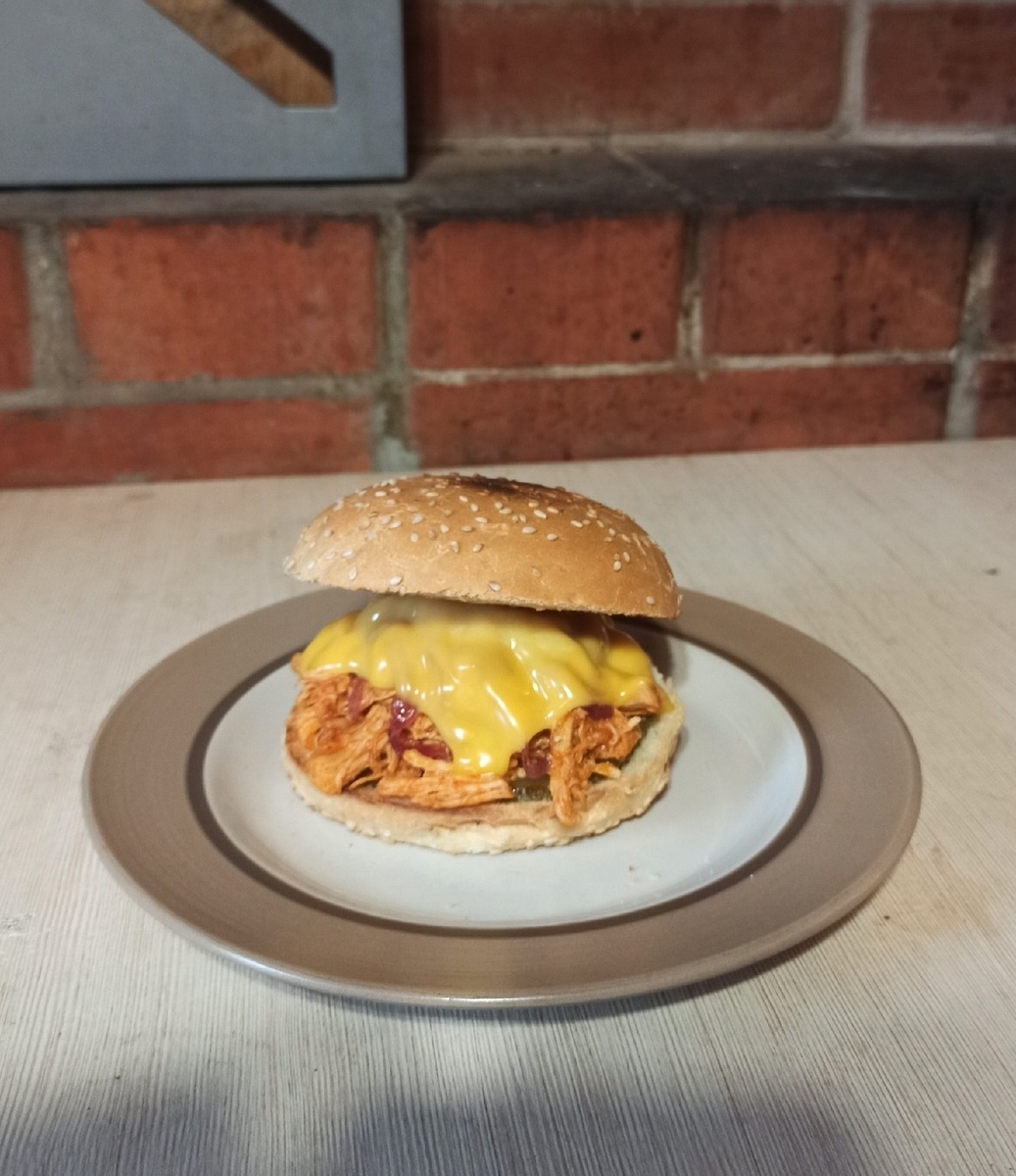 Вот и рецептики начали подъезжать, а значит я снова в родных краях тружусь на благо соотечественников. В данном случае на благо моих родных, а то совсем без меня рацион их оскудел) Бургер предполагает две основные заготовки: рваную куру и винный лук. Остальное в принципе по вкусу и усмотрению. Итак... 1. Рваная кура Нам понадобятся: Процесс: 1. Курицу очищаем, нарезаем на небольшие куски Обжариваем (можно не до полной готовности) 2. Отправляем курицу на сковородку (либо в кастрюлю) обжариваться в небольшом количестве масла 3. Апельсин очищаем, нарезаем, добавляем в курицу. Чеснок очищаем, давим и туда же. 4. Все остальные ингредиенты смешиваем и добавляем также к курице. 5. Тушим все вместе примерно 2 часа, пока курица буквально не начнет распадаться на волокна. 6. По окончании процесса достаем бадьян он же анис, курицу буквально разрываем на волокна (двумя вилками, напримеря). Курица получается необычная, очень пряная и реально вкусная. Но если нет весов, лучше на этапе тушения до