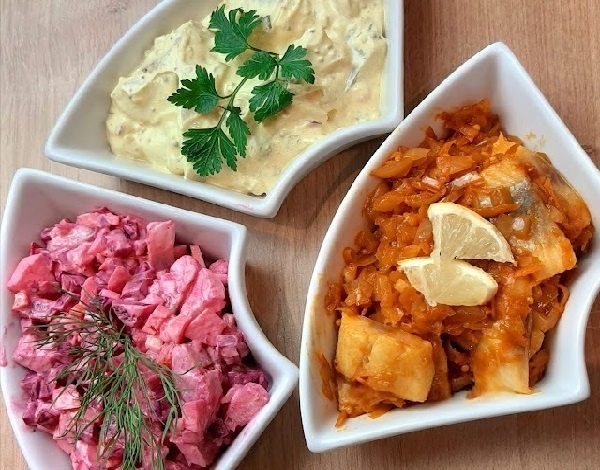 Сегодня расскажу о трех рецептах салата из сельди — я подаю их вместе, в одинаковых тарелочках, однако они разные на вкус и цвет. Чтобы гостям не было скучно, пусть пробуют салаты из селедки — совершенно разные, но одинаково вкусные.