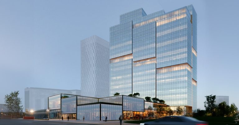 Вот такой стеклянный бизнес-центр с двухэтажной зоной ритейла построят прямо у «Полежаевской»