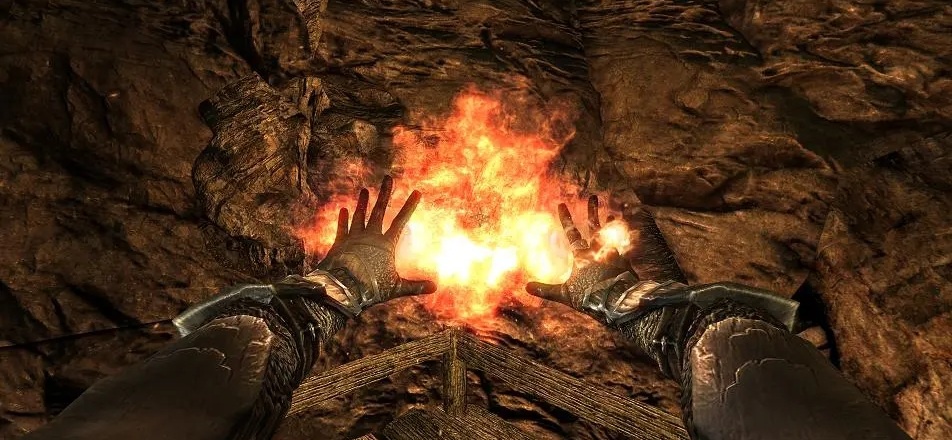 Пламя и его братья — Искры с Обморожением — это потрясающие заклинания, даром что дефолтные. У них отличное соотношение цены к урону, да и прицеливаться Пламенем не нужно — поэтому для многих Довакинов заливать жертву потоками огня с двух рук — это отличный способ расправиться с не очень сильным противником. Вот только он, во-первых, абсолютно неэффективен, а во-вторых, при правильном использовании Пламя способно куда как на большее. Трюк в том, что это заклинание эффективнее применять не удерживая кнопки мыши до упора, а использовать его короткими бурстами. Почему так? Потому что у каждой из школ разрушения есть свой дополнительный эффект, конечно, а у Пламени он в том, что подожжённые цели будут получать больше урона... вот только добавляется эффект только после того, как игрок перестанет кастовать этот спелл. Так что если на первом уровне спустить всю магию на 7 секунд каста, то горящая цель получит доп. урон от 1-2 ударов мечом и... всё. А вот если читать заклинание секунду и тут ж
