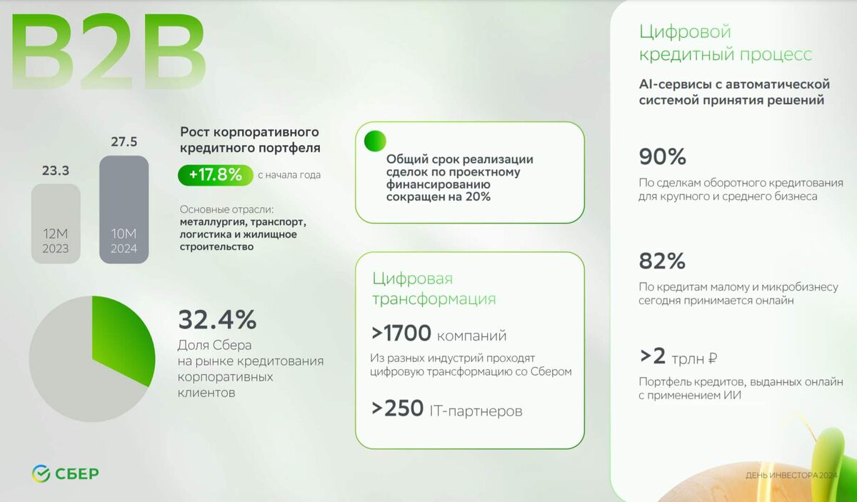 • Сбер провёл День инвестора на достойном уровне, обозначил свои достижения, цели и ожидания на 2025 год. Отдельного внимания заслуживает стремление банка внедрять новые технологии в свою деятельность, при этом менеджмент Сбера объективно оценивает свои возможности и не отрицает предстоящие замедления ряда показателей из-за высокой ключевой ставки.