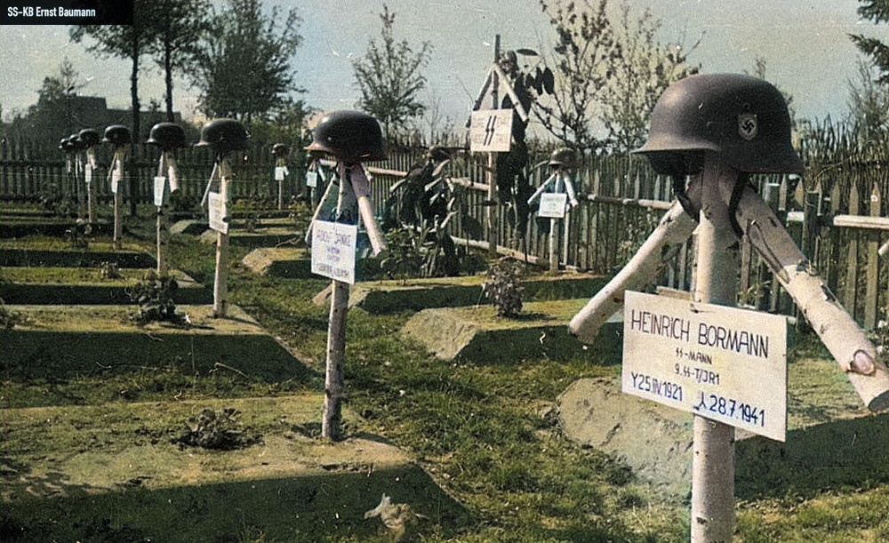 Что советские воины делали с могилами немецких солдат? В самом начале второй мировой, еще при польской кампании и во Франции, немцы старались вывозить тела своих погибших для погребения на Родине. Однако сразу же после нападения на СССР очень быстро подобная практика прекратилась - из-за огромных потерь отправлять двухсотых в Фатерлянд просто никаких ресурсов не хватило б. Потому домой после июня 1941-го отправляли только самых крутых офицеров, чином не ниже генерала. Таким ритуалом Гитлер словно бы пытался оправдаться за потери. Хотел показать, насколько типа ценит каждого зольдата, кто за идеалы нацизма и Третий Рейх воевал. Но, понятное дело, суровая русская реальность вкупе с суровыми же русскими морозами все эти витиеватые ритуалы с флагами да оркестрами тоже быстро отменила. Ох сколько же горе-завоевателей приняла за долгие века матушка-земля русская... От хазар до гитлеровцев. На могиле ставился деревянный крест (чаще всего, березовый) с табличкой, именем зольдата. Тут же ча