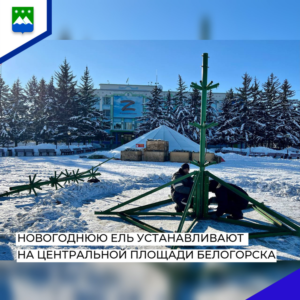 Новогоднюю Ель устанавливают на центральной площади Белогорска