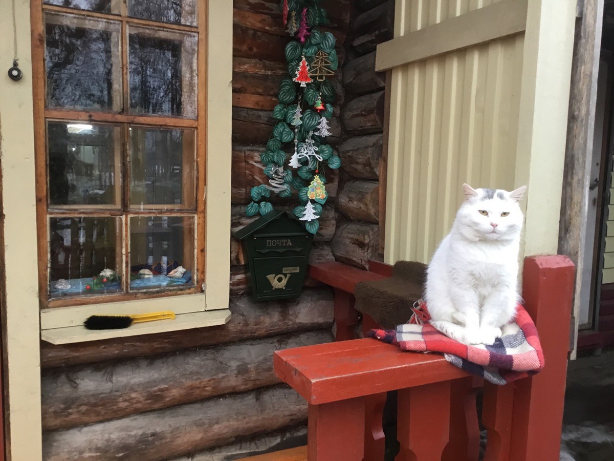 Пуся своя, но еще заходять соседские знакомые коты, шляются по участку и постоянно приходят-уходят новые. А дом -то частный, с участком. Забыла сказать, если интересно глянуть на место действия рассказа проходите на статью. На участок постоянно приходят какие-то потеряшки, наверное потому что это край частного сектора. Попить - есть водоемчик и поесть, обязательно покормят. Вот с этим-то и проблема. Родители не могут не кормить голодающих, а приручать нехорошо - взять себе не могут. Пуся не терпит никого, отчего родители переживают. Той зимой пришел кот, назвали Касьян, харчевался, просился жить. Все-таки пригрели, стали пускать в мастерскую - ну а как иначе, зима, морозы в Коми лютые. Привыкли, полюбили, а он пропал. Погиб наверное, ушел 10 января, последний раз его видели на повороте тропинки и исчез. Отпереживали. Потом весной приблудилась кошечка черно-белая с больным глазиком, когда я у них гостила. Родители сразу начали нервничать - не кормить не могут, но и брать не хотят в дом, там же Пуся. Выложила в группу потеряшки Сыктывкара фото и о чудо, нашлись хозяева! Нашлось и объявление данное ими раньше, прилетели с другого конца города на машине за любимой животинкой. Так эта коша домой идти не хотела, играла, бегала, кокетничала - еле поймали. Летом коты проходили мимо и вот осенью явился очередной с твердым намерением перезимовать. К сожалению он очень похож на Пусю. Взрослый кот, мама говорит ему лет пять. Шуганый, недоверчивый и твердо решивший жить именно тут. Конечно родители нервничают, не кормить не могут, совесть не позволяет, а кот Пусю он гоняет немилосердно и просится в дом. Оставили ночевать в коридоре, лежбище устроили на кресле- пометил. Запах в прихожей отвратный, а как отвадить... Договорилась мама со знакомой, врачом. У них в больнице в подвале живут коты, их кормят. По делу живут, мышей ловят, не прото так. Решили отвезти жить кота но новое место. Спецоперация отработана, пару раз котов так отвозили, но в этот раз провалилась с треском. Кота подманили, поймали, вызвали такси. Он стал биться, вырвался на свободу из сумки(конечно нужна была переноска, но не покупать же на раз) и растворился в окружающих огородах. Явился через час и продолжил жить. Пробовали не кормить, не могут, совесть не позволяет, пустили таки опять в коридор. Спит ночью там, днем во дворе ходит. Разогнал всех приходящих котов, навалял извечному Пусиному врагу, соседскому Тишке, отогнал рыжего и черно-белого, которые заходили пометить территорию. Чужие коты обходят теперь участок стороной. Пуся скандалит, убегает, залезает на яблоню. Папа ее снимает и несет домой на руках. Пусич, так прозвали кота делает вид что он ни при чем, в драку не лезет. Могут сидеть, смотреть друг на друга через окно. Пуся недовольно повякивает, Пусич делает вид что он статуя.