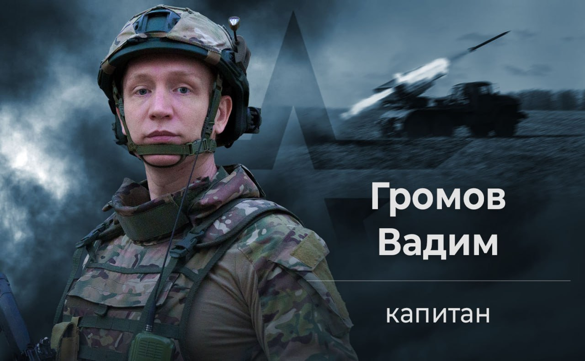 Капитан Вадим Громов участвует в спецоперации с февраля 2022 года. Принимал участие в боях за Мариуполь, Попасную, Марьинку и Артемовск. 🎖 За успешные действия по поддержке наступления мотострелковых подразделений и поражение техники и личного состава противника награжден медалью Жукова, медалью «За боевые отличия», а также медалями «За воинскую доблесть» I и II степени.