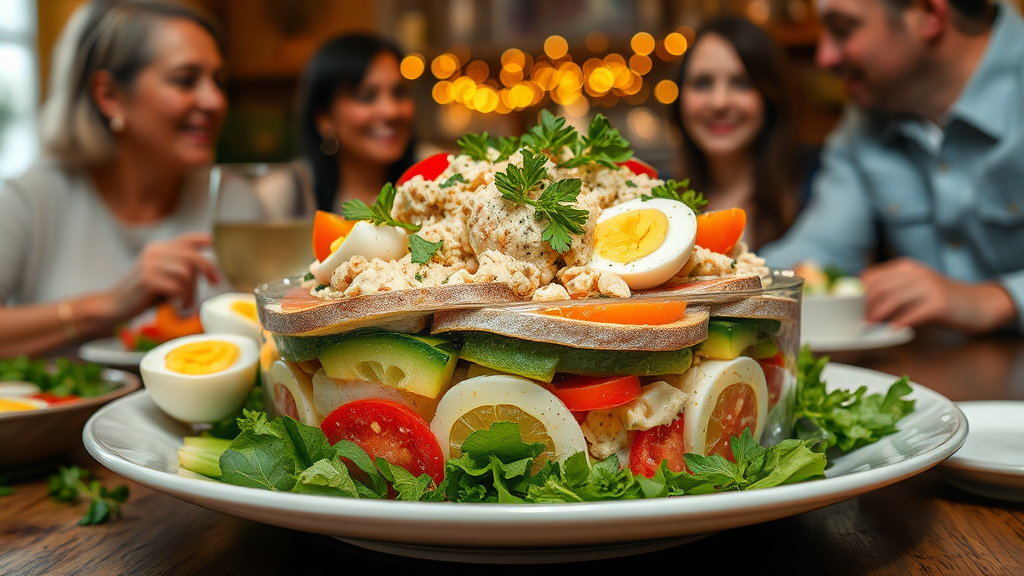 Мимоза по-новому. Нежнейший салат: даже настаивать не нужно Представьте себе уютный семейный вечер, когда за столом собираются близкие, и в воздухе витает аромат свежеприготовленных блюд. Это идеальное время для того, чтобы порадовать родных оригинальным салатом «Мимоза» в новом исполнении. Легкий, нежный и одновременно сытный, этот салат станет неотъемлемой частью вашего праздника, а процесс его приготовления превратится в настоящее кулинарное приключение. Ингредиенты Консервированный тунец – 1 банка (обычно весом 185 г, лучше выбирать рыбу в собственном соку) Яйца – 4 шт. (возьмите домашние, чтобы получить яркий желток) Отварной картофель – 2-3 шт. (желательно мелкие, молодые) Морковь – 2 шт. (сладкая, свежая) Лук – 1 шт. (можно использовать красный для легкой сладости) Майонез – 150 г (предпочтительно домашний) Соль и перец – по вкусу Зеленый лук или укроп – для украшения (собранные на местной ферме) Приготовление Начните с приготовления овощей: отварите картофель и морковь до мягко