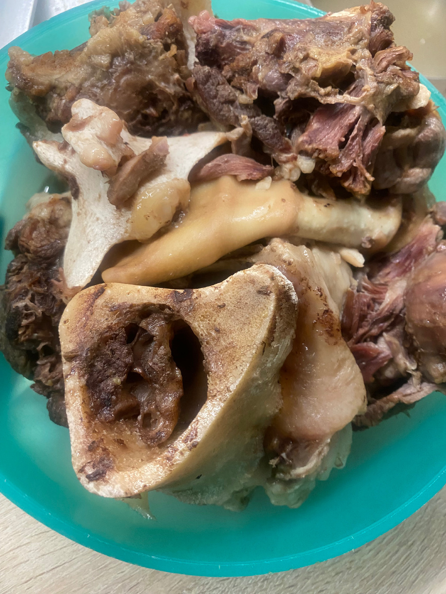 Видите как всё сварилось, мясо от кости отошло , теперь разбираю и мясо режу, раскладываю сразу по приготовленной таре.