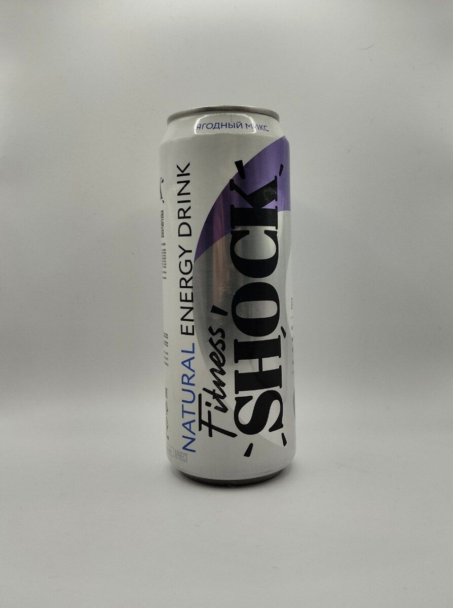 Обзор Fitness Shock Ягодный микс Самый привитый вкус скорее всего в одном из самых худших исполнений. Данный бренд занимается изготовлением и продажей спортивных сладостей, особенно известны их брауни. Первый из трёх их энергетиков вышел неудачным и маловероятно что этот будет очень вкусным. Куплен – Mass market Цена – 109₽ Объём – 450 мл Кофеин – ~22/100 Таурин – Отсутствует Сахар – Отсутствует Подсластители – Сукралоза Тут как-то даже и говорить ничего не хочется. Типичный спортик дизайн исполненный на термоусадке – указано что он натуральный, так же это подтверждается кучей надписей натуральных составляющих. Цвет у банки фиолетовый, а так же есть закос на металлик. Но вот что-что, а логотип у них мне нравится, в особенности надпись "Shock", а вот за заднюю часть где всё мелким шрифтом похвалить не выйдет, пока прочитал всё, глаза чуть не выпали. Начало уже хорошее, приятный ягодный аромат газировки, а скорее даже морса, а ещё скорее и того и другого. В аромате слышны смородина –
