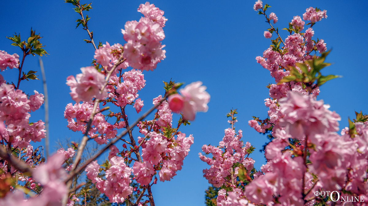 Цветение магнолии и сакуры в парке Южные культуры, Сочи. Весна