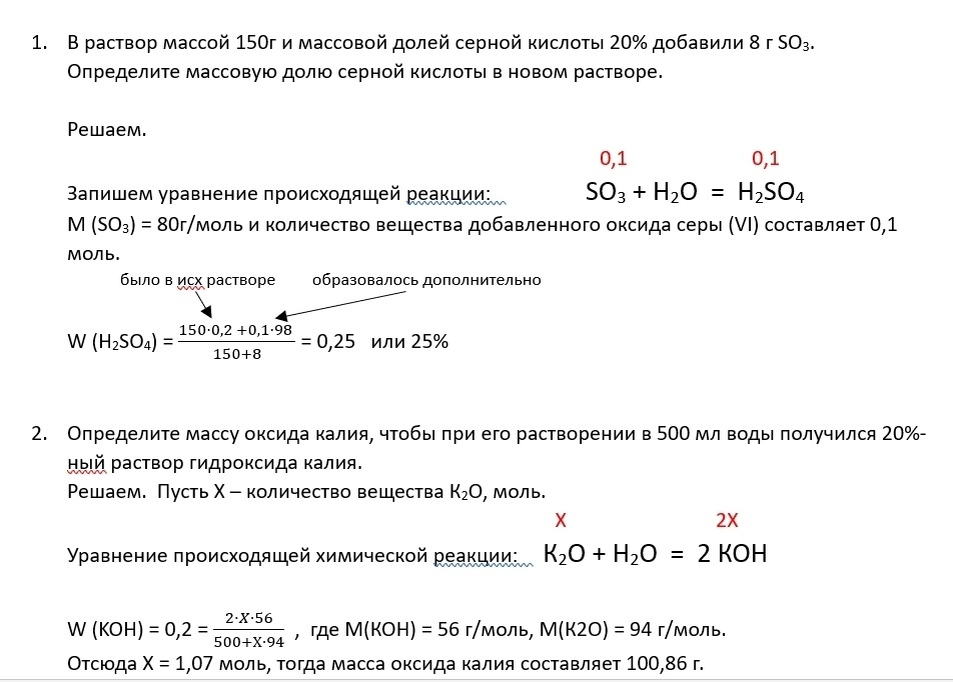 2. 5,6 г оксида серы (VI) растворили в 500 г воды. Рассчитать массовую долю растворённого вещества. Ответ: W(H2SO4) = 13,6%.