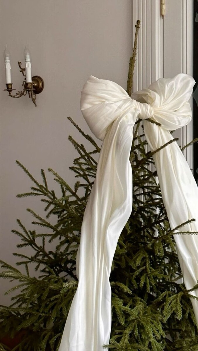Когда я увидела такой способ оформления елки я была удивлена. А что так можно было? Просто удивительное волшебство. Шикарно и просто в исполнении. Всего один бант завязать на елке, и уже начинается новогоднее волшебство! Вам потребуется отрезок искусственного шелка. Примерно до метра в ширину и до 5 в длину. Тут, конечно, все зависит от высоты вашей елочки. Можно взять не шелк, а х/б ткань, но шелк будет лучше драпироваться и выглядеть нарядней. Мы знаем, что всего существует три новогодних цвета - красный, белый и зеленый. И белый и красный одинаково выигрышно смотрятся на зеленой красавице. У меня вызывает сомнения. Но если с энтузиазмом на это взглянуть, то почему бы нет? Тут придется позаморачиваться завязывая банты на елку, но с другой стороны атласные ленты не такие и дорогие, можно выкинуть елку прям вместе с ними 😂 Эта подборка скорее для вдохновения, чем для осуществления, но что-то в каждой из этих елок есть. Вдохновляйтесь, влюбляйтесь в творчество, заряжайтесь новогодней