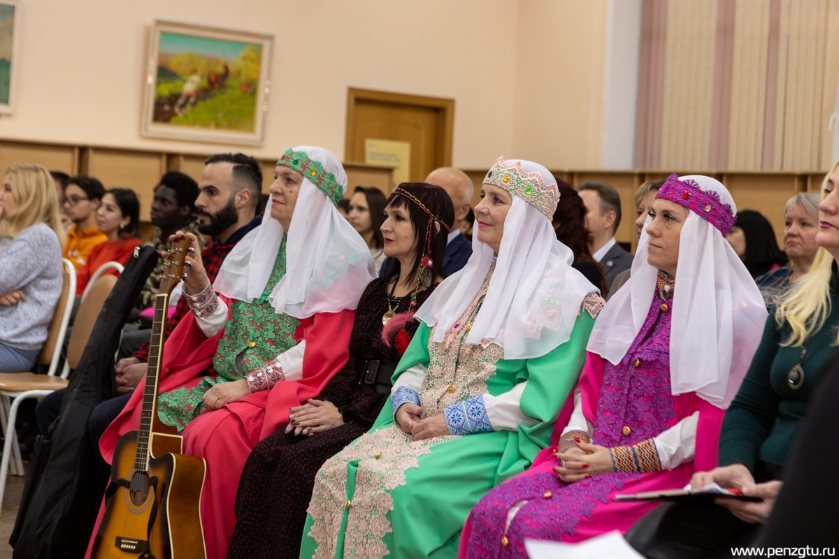 10 декабря в читальном зале собрались студенты, преподаватели и сотрудники университета, чтобы прикоснуться к традициям культуры разных народов не только России, но и планеты. Идея провести интерактивную лекцию на тему «Общность Российский народ: исторические и культурные основания» была связана с потребностью людей понять исконные корни своих предков, попытаться ответить на вопрос: как жанр фольклора объединяет их? Модератором и спикером выступили ученые кафедры «Перевод и переводоведения», кандидат философских наук, доцент С.Е. Ковалева и доктор философских наук, профессор С.Н. Волков. Центральным звеном этого вечера стали участники проекта «Гардарика» Пензенского отделения Русского географического общества. Присутствующие на этой творческой встрече услышали и увидели интереснейшие исполнения песен и стихов, связанных с русской культурой. Председатель Пензенского областного отделения РГО И.В. Пантюшов представил основную концепцию выступления участников проекта «Гардарика», в кото