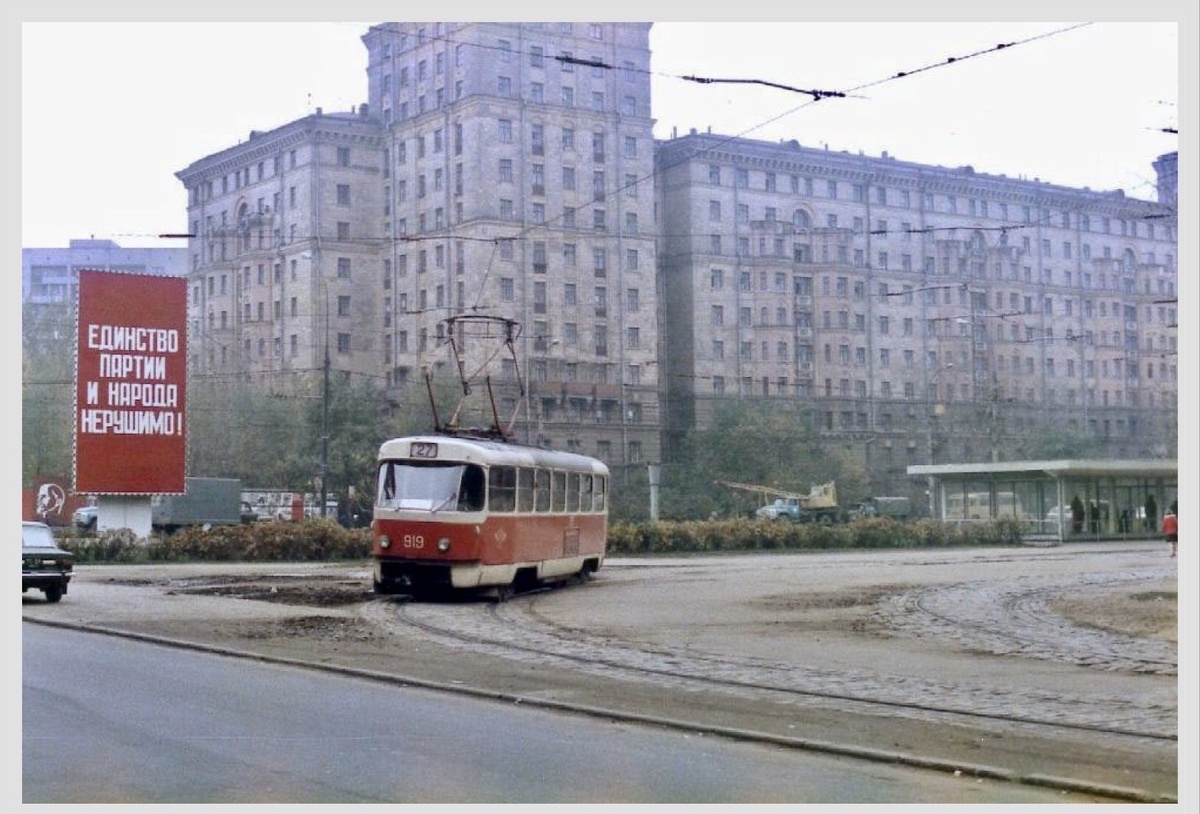 Давайте совершим очередное путешествие сквозь время, прогуляемся по волнам нашей памяти, вспомним, как жили тогда и посмотрим, что изменилось за прошедшие годы. Поехали! ... На фото Ленинградское шоссе у станции метро "Войковская", справа видно вход. Это вид от улицы Зои и Александра Космодемьянских. Тогда ещё считали, что "Единство партии и народа нерушимо", а через несколько лет разрушились и единство и СССР. Фото 1985 года, Гордон Стюарт Вид с тех пор не изменился, только трамваи теперь другие ходят и на входе в метро установили новый павильон Одной из точек притяжения у метро "Войковская" тогда был кинотеатр "Варшава". Фото 1980-х годов Кинотеатр давно закрылся, здание за прошедшие годы не раз переделывали и использовали под разные цели А это автобусная станция у метро "Войковская", в Старопетровском проезде. Вид от Ленинградского шоссе. Фото 1988 года, Александр Шанин Сейчас автостанция занимает лишь треть от старой территории, на части построили тц, а другая используется под парк