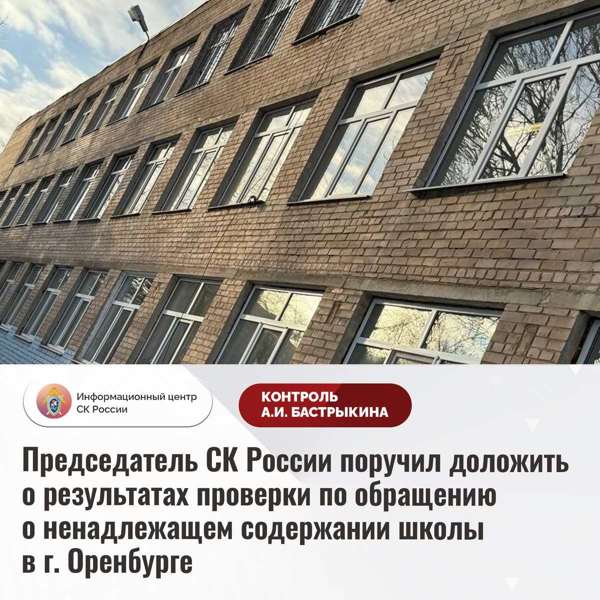 Председатель СК России поручил доложить о результатах проверки по обращению о ненадлежащем содержании школы в г. Оренбурге В Информационный центр СК России обратилась жительница города Оренбурга. Она сообщила, что одно из образовательных учреждений, 1974 года постройки, находится в непригодном для пребывания детей состоянии: на стенах и потолках образовались многочисленные трещины, в комнатах личной гигиены нарушены санитарно-эпидемиологические нормы. При этом капитальный ремонт здания ни разу не проводился. Обращения родителей в профильные структуры результатов не принесли. Указанная ситуация освещается в сети Интернет. В СУ СК России по Оренбургской области по поступившему обращению начата процессуальная проверка. Председатель Следственного комитета Российской Федерации Александр Иванович Бастрыкин поручил руководителю СУ СК России по Оренбургской области Вячеславу Давидовичу Зудерману представить доклад о ходе и результатах процессуальной проверки, поставив ее на контроль в централь