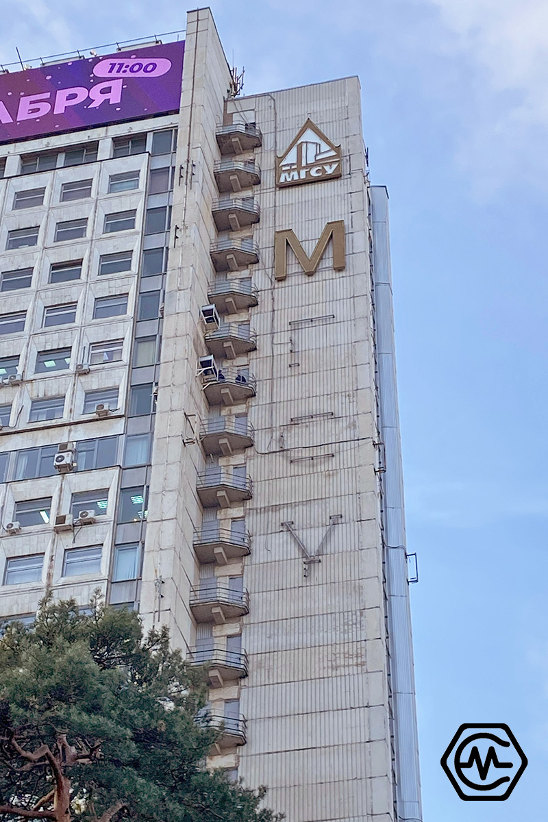 · подъём строительных материалов и технологического оборудования на кровлю, · монтаж перемычек и фасадных фиброцементных панелей, · монтаж стеклопакетов различного размера и веса. Все видеорепортажи можно посмотреть в наших социальных сетях и на сайте компании. В этом сюжете мы демонстрируем уникальную технологию по демонтажу объёмных конструкций с фасада здания с использованием крана «Пионер». Этот опыт расширяет область применения кранов. Самая высокая отметка демонтируемого объекта находится на высоте 70 метров. Московский государственный строительный университет обновляет фасад и демонтирует прежние названия университета – МИСИ и МГСУ. Для демонтажа конструкций была разработана технологическая карта. ООО «Станкомаш» предоставил в аренду кран «Пионер» грузоподъёмностью 500 кг. ►С подробными характеристиками линейки кранов «Пионер» можно ознакомиться на странице сайта: https://www.stankomasch.ru/catalog/show/106-krany-pioner/ Помощь в демонтаже конструкций оказывали промышленные ал