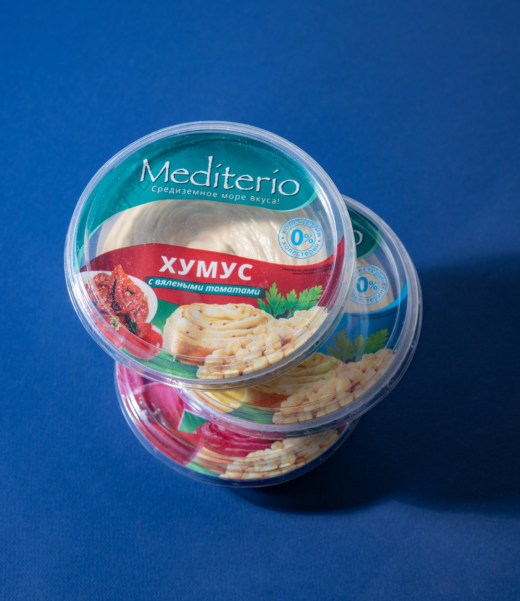 "Mediterio" - премиальный бренд хумуса, представляющий средиземноморскую кухню. В производстве хумуса "Mediterio" используется только импортное сырьё из стран происхождения хумуса. Это позволило добиться абсолютно аутентичного вкуса продукта. В состав хумуса "Mediterio" не входит консервант Е211 (бензоат натрия). Расскажем подробнее об этом бренде хумуса и его разновидностях. Хумус классический Приготовлен по традиционному рецепту. Предназначен как для первого знакомства с продуктом, так и для ценителей и знатоков. Его можно намазывать на хлеб вместо масла либо сервировать, как это делают в ближневосточных ресторанах, разложив на тарелке и украсив оливковым маслом, специями и самыми разными добавками по вашему вкусу.
