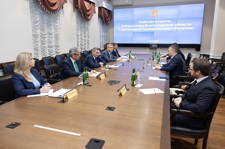 Губернатор Волгоградской области Андрей Бочаров сегодня, 11 декабря, провел рабочую встречу с делегацией госкорпорации «Росатом». Как сообщили V102.RU в обладмине, глава региона обсудил с руководителями структурных подразделений «Росатома» вопросы реализации масштабных высокотехнологичных инвестиционных проектов на территории региона. Напомним, накануне индустриальные возможности региона оценил помощник Президента России Николай Патрушев. Он посетил несколько производственных площадок, а также провел совещание по вопросам участия промышленных предприятий Волгоградской области в развитии судостроения страны. Фото администрации Волгоградской области